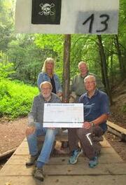 2020 - Geldspende für die Interessengemeinschaft Obrunnschlucht. v. l., hinten: Beate Volk und Karl Neumeister, vorne: Karl Stutz und Helmut Hilke bei der Scheckübergabe (Foto: Klaus Pankow) Alle im Vorstand der IG Obrunnschlucht.